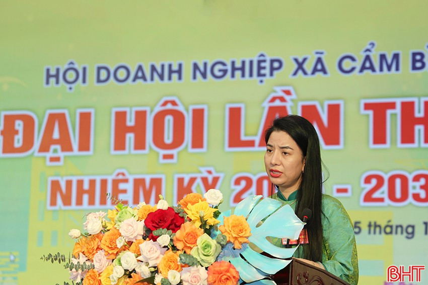 Phó Chủ tịch Hội Doanh nghiệp xã Cẩm Bình Nguyễn Thị Thanh Huyền trình bày báo cáo tại đại hội.